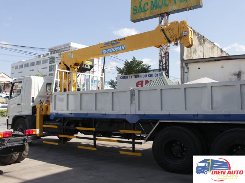 Xe tải Hino 12 tấn gắn cẩu Soosan SCS746 – 7 tấn 6 khúc được sản xuất bởi linh kiện nhập khẩu 100% từ Nhật Bản mang chất lượng cao và bền bỉ. Xe được ra mắt tại thị trường Việt Nam đầu năm 2018 mang động cơ Euro4 – động cơ mạnh mẽ và bền bỉ. Khung sườn xe tải gắn cẩu chắc chắn và không bị rỉ sét bền bỉ theo thời gian. Thùng xe lớn chở hàng hóa nhiều hơn và thuận tiện hơn, xe đang được mọi khách hàng chọn lựa nhiều nhất hiện nay. Giá xe tải gắn cẩu hợp lý so với các dòng cùng phân khúc.