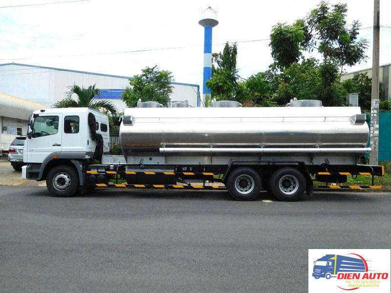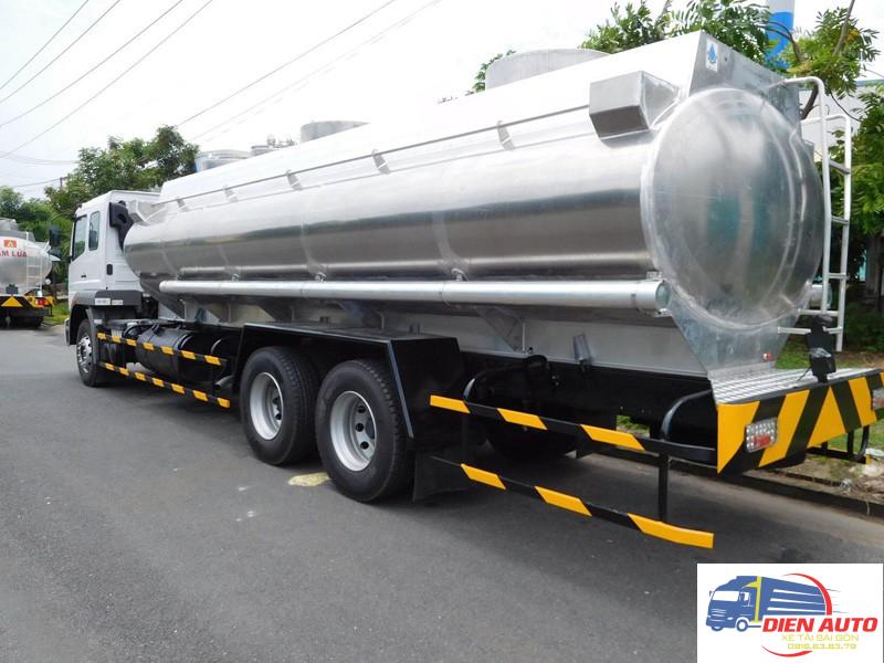 – Vật liệu: Thân bồn Thép SS400 dày 4mm, vách ngăn dày 4mm. Chân bồn: thép SS400 dày 5mm, Xương cặp vách: thép V50, Cản hông: thép hộp 60×30, Cản sau: Thép dày 4mm, Vè chắn bùn Inox430. Cầu thang phía sau: thép ống Ø27.