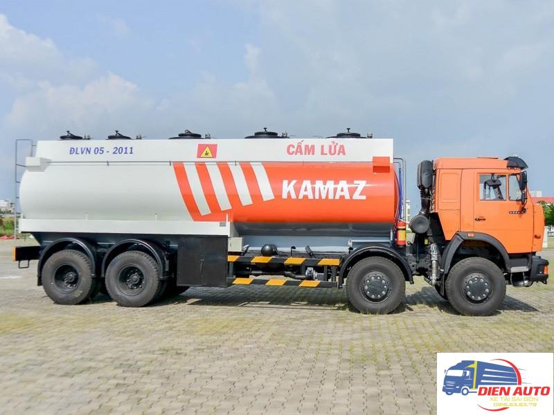 Xe bồn Kamaz 20 khối đóng thùng trên nền cơ sở xe tải Kamaz 6450 nhập khẩu nguyên chiếc được trang bị động cơ có dung tích 10.850cc cho công suất mạnh mẽ, vận hành bền bỉ.