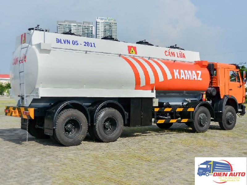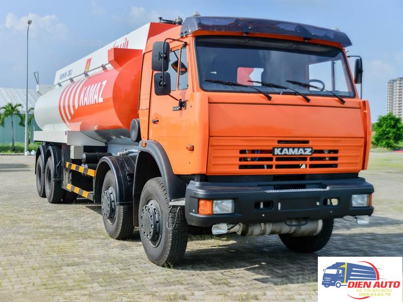 Xe bồn chở xăng dầu Kamaz 20 khối đóng thùng trên nền cơ sở xe tải Kamaz 6450 nhập khẩu nguyên chiếc được trang bị động cơ có dung tich 10.850cc cho công suất mạnh mẽ, vận hành tốt trên mọi địa hình. Bồn chở nhiên liệu với dung tích 23 khối được đóng bằng thép ngoại nhập chất lượng cao, công nghệ sơn tĩnh điện chống ăn mòn điện hóa, tăng tính an toàn, tăng tuổi thọ bồn, đồng thời không làm giảm chất lượng cho nhiên liệu bên trong.