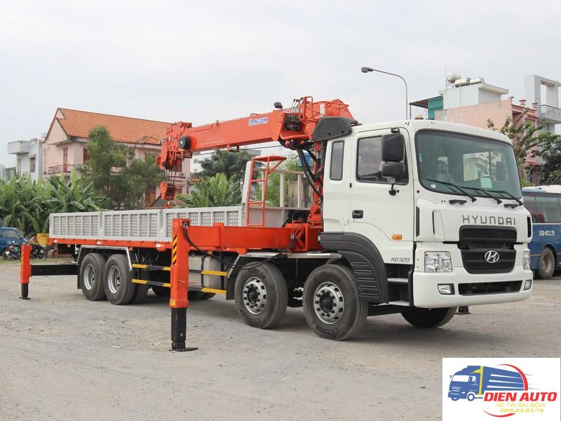 Xe tải HD320 11 tấn 4 chân gắn cẩu Kanglim KS2036 được đóng trên nền xe tải Hyundai HD320. HD320 là dòng xe tải nhập khẩu nguyên chiếc từ nhà máy Hyundai Hàn Quốc với chất lượng cao và bền bỉ. Đây là dòng xe đi đầu trong phân khúc xe tải nặng trang bị đầy đủ mọi tiện nghi từ động cơ mạnh mẽ tiết kiệm nhiên liệu đến nội và ngoại thất xe.