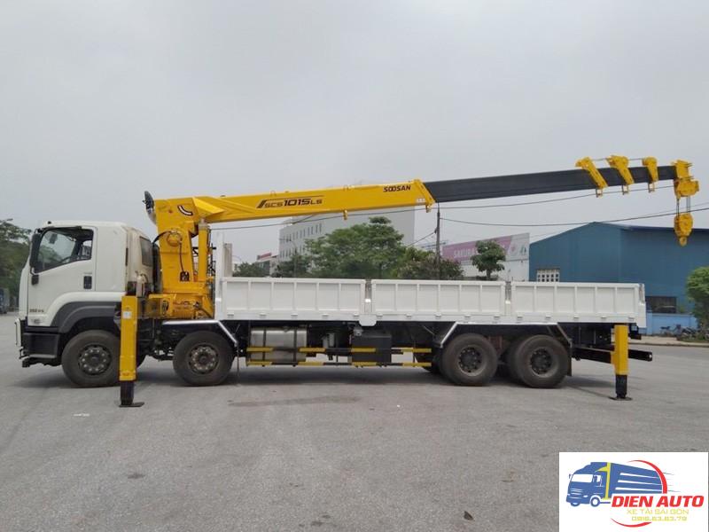 Nhắc đến tải Isuzu gắn cẩu chúng ta không thể nào không nhắc đến xe tải Isuzu Vĩnh Phát FV330 4 chân 12 tấn gắn Soosan SCS1015LS 10 tấn, xe có thiết kế khá tinh tế và sắc xảo, tất cả các bộ phận trên xe được lắp đặt tỉ mỉ dưới dây chuyền công nghệ hiện đại và tiên tiến nhất hiện nay. Vị trí mặt ga lăng trong xe được thiết kế khe thông gió đảm bảo khí động học làm mát động cơ và làm giảm tối đa sức cản của gió đảm bảo tiết kiệm được nhiên liệu cao.