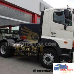 Xe đầu kéo Hino 60 tấn công suất 450Ps được nhập khẩu nguyên chiếc từ Nhật Bản với thiết kế mẫu cabin Novus truyền thống. Ngoại thất xe đầu kéo Hino rất phong cách, thiết kế đơn giản không cầu kỳ nhưng vẫn đảm bảo tính động học tăng năng suất làm việc. Nội thất xe đầu kéo có đầy đủ trang thiết bị hiện đại cần thiết nhất cho người sử dụng. Bên cạnh đó, giá xe đầu kéo Hino cũng rất được lòng khách hàng bởi cực kỳ ưu đãi, tốt hơn nhiều so với các hãng xe khác.