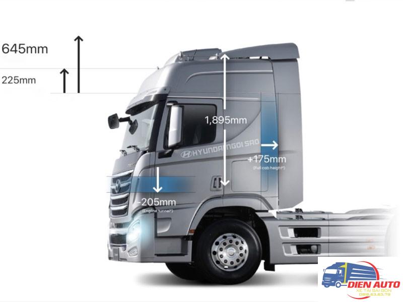 Xe đầu kéo Hyundai Xcient GT 440PS đã chiếm trọn cảm tình của mọi khách hàng ngay từ lần đầu tiên nhìn thấy nhờ phong cách thiết kế gây ấn tượng đến từng chi tiết. Đồng thời, nhà sản xuất cũng đầu tư thiết kế chiếc xe phù hợp với điều kiện địa hình cũng như khí hậu tại Việt Nam. Tổng thể phần đầu cabin xe đầu kéo Hyundai được thiết kế theo kiểu dáng khí động học với sự đột phá về thiết kế trên từng chi tiết của dòng xe. Với việc áp dụng phong cách thiết kế này đã giúp cho chiếc xe làm giảm lực cản của không khí, lưu thông gió tốt và nâng cao hiệu quả tiết kiệm nhiên liệu tối ưu. Cabin xe còn nổi bật với cấu tạo hình chữ nhật, tổng thể cabin có chiều cao lên tới 225mm và chiều dài hơn 175mm so với chiếc cabin tiêu chuẩn, điều này khiến cho tổng thể xe đầu kéo trông mạnh mẽ và cứng cáp hơn rất nhiều. Xe đầu kéo Hyundai Xcient cũng được áp dụng sử dụng các tông màu chủ đạo nổi bật và hiện đại như: trắng, xám, đỏ đô. Nước sơn hiện đại theo công nghệ cao giúp cho xe luôn thật sự thu hút và đẹp theo thời gian. Ngoài ra, cản trước của dòng xe này được đầu tư lắp ráp từ loại vật liệu thép chịu lực cao nhằm đảm bảo cabin xe sẽ được bảo vệ khi xảy ra sự cố không mong muốn.