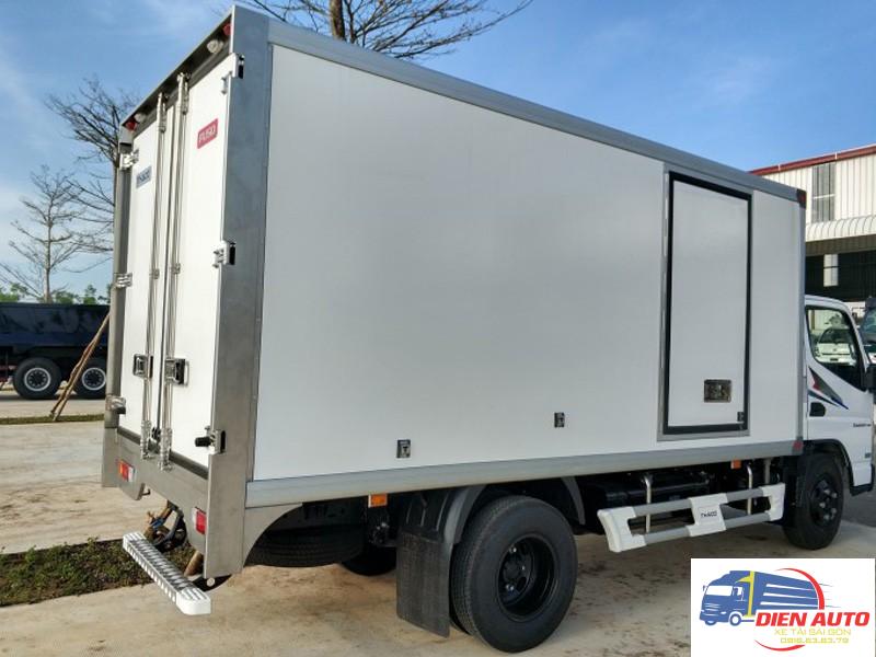 Thùng đông lạnh của xe được đóng theo quy cách của Cục Đăng Kiểm Việt Nam với kích thước lọt lòng thùng là 4220 x 1710 x 1790/—mm. Tải trọng cho phép chở đạt 1T9. Với khả năng làm lạnh tới -18 độ C và khả năng cách nhiệt tốt giúp hàng hóa luôn được bảo quản tốt nhất, đảm bảo chất lượng trong quá trình vận chuyển.