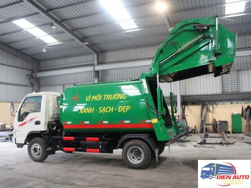 4. Hệ thống điều khiển nâng cặp thùng rác nhựa (240 – 660) lít phía sau bằng cơ khí với góc nâng lớn, giúp cho việc đổ rác vào khoang chứa được sạch sẽ, không rơi đổ rác ra ngoài.