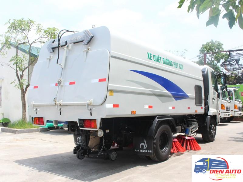 – Vận hành: Vận hành bằng thủy lực. Khi xe di chuyển bình thường trên đường, 2 chổi sẽ thu lại hai bên. Khi vận hành quét hút, một chổi sẽ mở sang bên cạnh và hoạt động cùng chổi chính. Trên các chổi đều có hệ thống thủy lực đảm bảo an toàn khi chổi gặp chướng ngại vật trên đường quét.