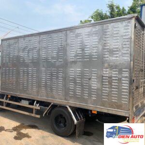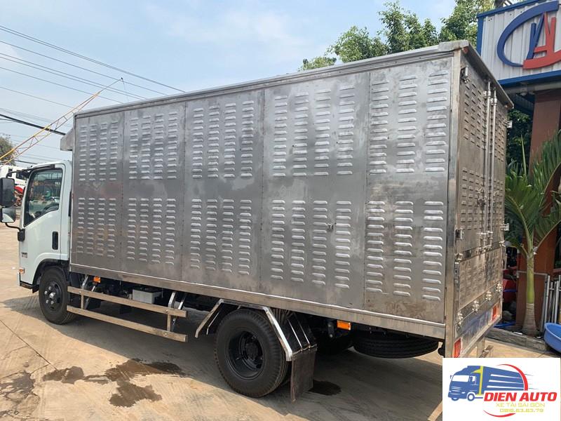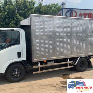 Thùng của xe tải chở gia cầm Isuzu NMR85HE4 1T8 có kích thước lọt lòng thùng là 6100 x 2060 x 2040 mm, tải trọng cho phép chở là 1800kg, chính vì đây là một loại thùng chuyên chở gà, vịt nên điều đầu tiên cần phải đáp ứng được đó chính là độ thông thoáng, đảm bảo không khí lưu thông liên tục. Thùng thường được đóng bằng inox 430 vì nó có độ bền cao và chống gỉ sét tốt vì phải rửa nước nhiều lần để vệ sinh thùng sau mỗi lần vận chuyển, hơn nữa nó còn chịu được sự ăn mòn của chất thải gia cầm. Thùng thường được đóng theo 2 kiểu, một là chia nhiều tầng và chứa trực tiếp gia cầm bên trong, một loại sẽ không chia theo các tầng mà gia cầm sẽ được chứa bên trong các lồng nhựa và được xếp vào thùng, thường loại không chia tầng được dùng để chở những loại gia cầm nhỏ, tránh rơi rớt trong quá trình vận chuyển. Ngoài ra, sàn được thiết kế lá me và có rãnh thoát nước.