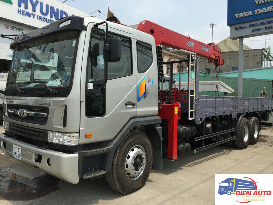 Xe tải Daewoo 3 chân 6×4 gắn cẩu 7 tấn 6 khúc CSS106 được sản xuất với 100% linh kiện Hàn Quốc, chất lượng luôn được đảm bảo, giá trị trường tồn theo thời gian. Xe do nhà máy Daewoo Hàn Quốc sản xuất theo tiêu chuẩn Châu Âu và đạt yêu cầu khí thải Euro 4. Bảng giá xe tải gắn cẩu được cập nhật liên tục để khách hàng dễ theo dõi.