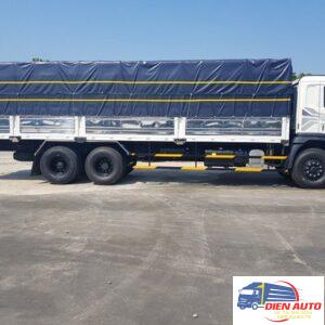Xe tải Daewoo đóng thùng mui bạt với tải trọng tối đa lên đến 15 tấn với kích thước lòng thùng 9200 x 2360 x 720/2150 mm. Thùng lớn được đóng bền đẹp, đảm bảo chịu tải tốt.