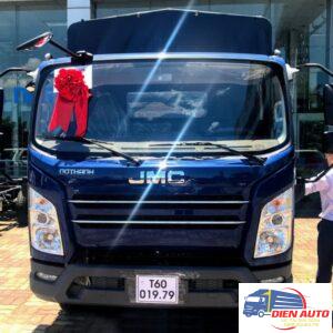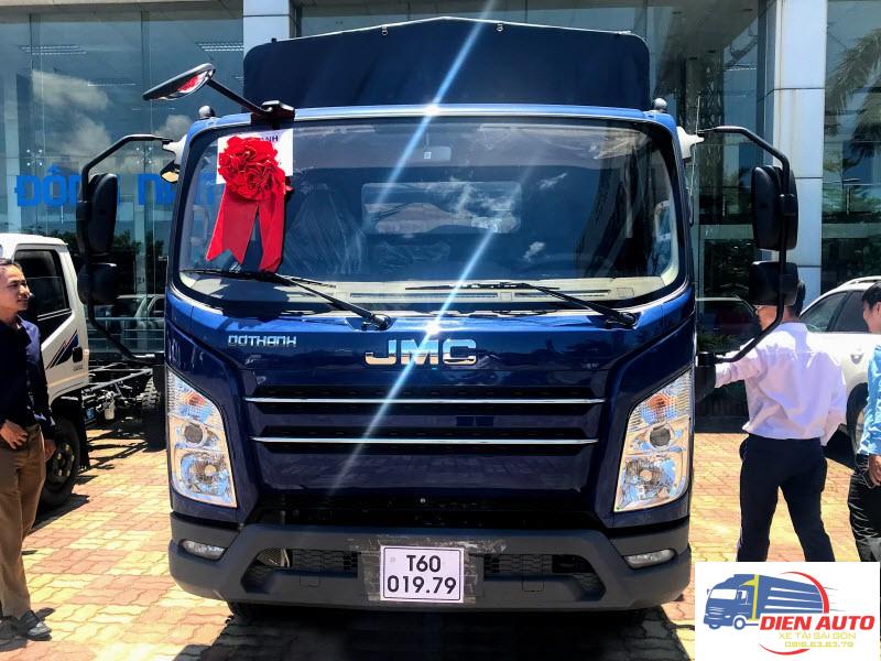 Phần đầu xe được đặt logo JMC to bản ngay trung tâm mạ crom sáng bóng nhìn rất sang trọng và tinh tế kết hợp với logo DOTHANH tạo điểm nhấn cho đầu cabin, thể hiện sự hợp tác của hai nhà máy.