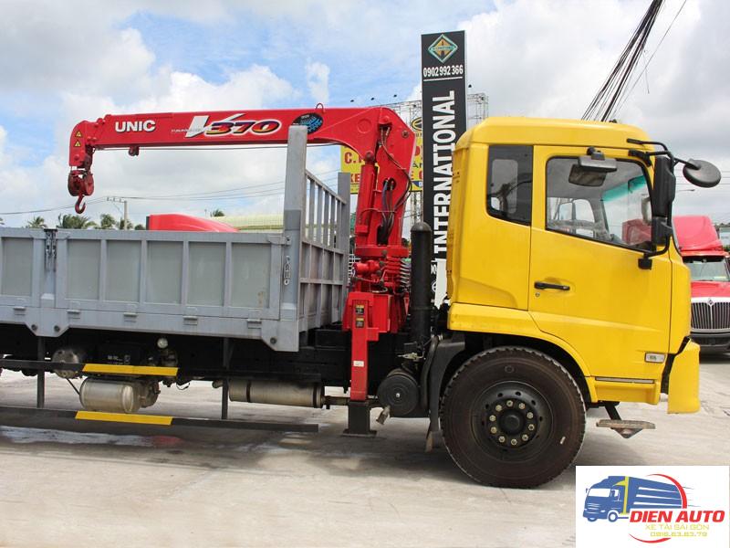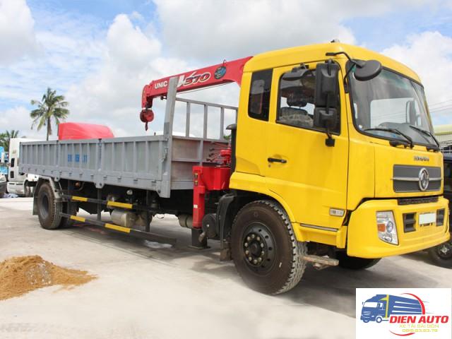 Xe tải Dongfeng 7T5 gắn cẩu Unic URV375 3 tấn 5 khúc được nhập khẩu nguyên chiếc từ nhà máy Dongfeng Trung Quốc. Xe tải gắn cẩu có mẫu mã hiện đại, đường nét tinh tế, khối lượng tải trọng cao, bền bỉ, có thể trở hàng hóa nhiều, dễ dàng di chuyển đến khắp mọi vùng miền. Khung xe tải Dongfeng Hoàng Huy 7.5T được làm bằng thép chịu lực nguyên khối, liên kết chặt chẽ, gia cố bằng đinh tán giúp xe chịu được lực, hạn chế rung gầm. Giá xe tải gắn cẩu được cập nhật liên tục để khách hàng dễ dàng theo dõi.