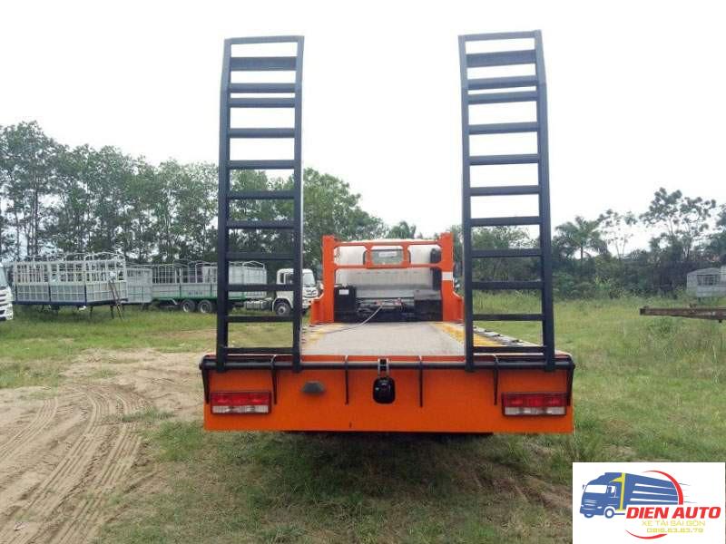 Với thiết kế hài hòa và chắc chắn, phần chở máy chuyên dùng dễ dàng hoạt động và vận chuyển bao gồm: nâng hạ 2 chân chống thủy lực trước, sàn thùng chở máy công trình được gia cố chắc chắn tạo cho xe sự vững chãi và an toàn, chân sau lên xuống của máy công trình cũng được nâng hạ bằng hệ thống thủy lực, giúp người vận hành dễ dàng trong quá trình điều khiển.