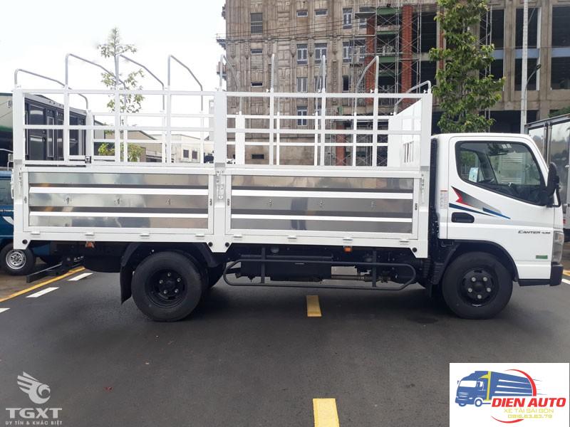 Xe tải Fuso Canter 4.99 thùng mui bạt tương tự như dòng cũ về cách thức đóng thùng. Xe có thiết kế gồm 5 bửng với chiều cao bửng đạt 660mm.