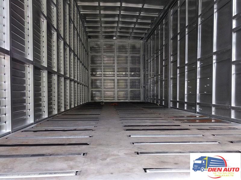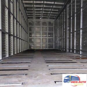Bên trong thùng hàng thiết kế các con lăn kết hợp giá đỡ nhiều tầng có dây đai, móc giữ hàng để đảm bảo an toàn trong suốt quá trình vận chuyển. Ngoài 1 cửa chính phía sau thùng thì còn có thêm 6 cửa ở bên hông thùng thuận tiện khi lên xuống hàng hóa.
