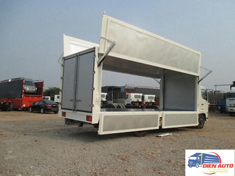 Nhìn chung cấu tạo thùng của chiếc xe này cũng khá giống với xe tải thùng kín nhưng điểm đặc biệt là thùng có thể mở bừng 2 bên và được chống 2 bên như một hình cánh dơi vậy. Tác dụng chính của kiểu thiết kế này là biến xe thành một chiếc xe bán hàng lưu động để buôn bán kinh doanh các mặt hàng nhu yếu phẩm như trái cây, quần áo, giày dép…và cũng như giúp các thao tác tháo dỡ hàng hóa diễn ra nhanh chóng thuận tiện hơn. Thùng xe có độ cứng cáp nhất định chịu được lực và tải cao.