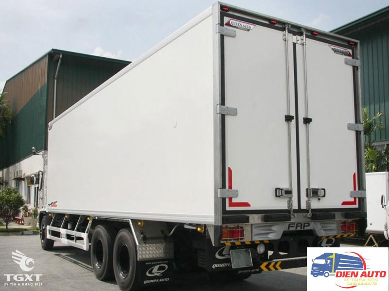 Vật liệu dùng để chế tạo thùng là bằng Composite nguyên tấm cao cấp có độ cứng cáp nhất định, chịu lực tốt. Mặt thùng trơn láng với màu trắng sang trọng, bắt mắt có thể dùng để dán các tấm áp phích hay banner quảng cáo. Nhờ vào thiết kế tấm xốp chính giữa có khả năng cách nhiệt cực đỉnh sẽ tránh cho tác động của ánh nắng mặt trời chiếu xuyên vào bên trong thùng xe. Tổng quan thùng xe rất chắc chắn, chịu được tải cao với khối lượng cho phép chở lên đến hạn mức 15000Kg.