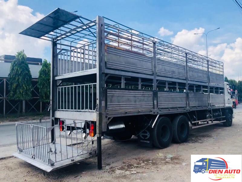 Xe chở heo Hino 14 tấn FL8JW7A là dòng xe được đóng trên nền xe FL, xe có gắn bửng nâng chắc chắn nâng tải gia súc lên xuống một cách thuận tiện. Ngoài ra, xe có kích thước thùng lớn chở được nhiều gia súc hơn.