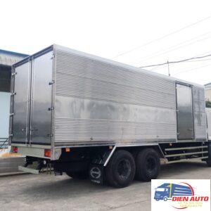 Thùng xe được đóng mới 100% theo tiêu chuẩn của Cục Đăng Kiểm Việt Nam với kích thước lọt lòng thùng là 9350 x 2380 x 2300/—mm. Tải trọng cho phép chở đạt 13600Kg đáp ứng được mọi nhu cầu chuyên chở hàng hóa của khách hàng.