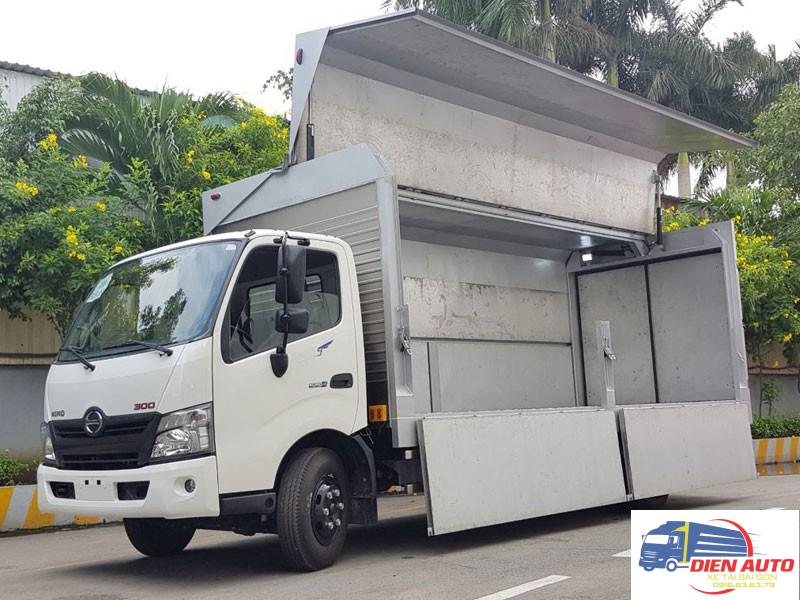Xe tải Hino XZU730L 5 tấn thùng kín cánh dơi có thiết kế thùng tương đồng với xe tải thùng kín nhưng điểm đặc biệt nổi bật của em nó chính nằm ở khả năng có thể mở bửng 2 bài, được cố định chắc chắn 2 bên tạo thành khoảng hở thích hợp cho việc bán hàng lưu động hay giúp chất dỡ hàng hóa thuận tiện dễ dàng. Thùng với kích thước lọt lòng lớn 5650 x 2050 x 1960/— mm cùng tải trọng cho phép chở lên tới 5000Kg có thể chứa được nhiều hàng hóa.