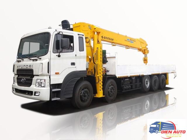 Xe tải Hyundai HD360 5 chân gắn cẩu Soosan được đóng trên xe nền Hyundai HD360 nhập khẩu nguyên chiếc từ nhà máy Hàn Quốc với chất lượng cao và bền bỉ. Xe tải gắn cẩu Soosan SCS1015L sau khi gắn cẩu có trọng tải cho phép chở 13900kg và kích thước thùng chở hàng
