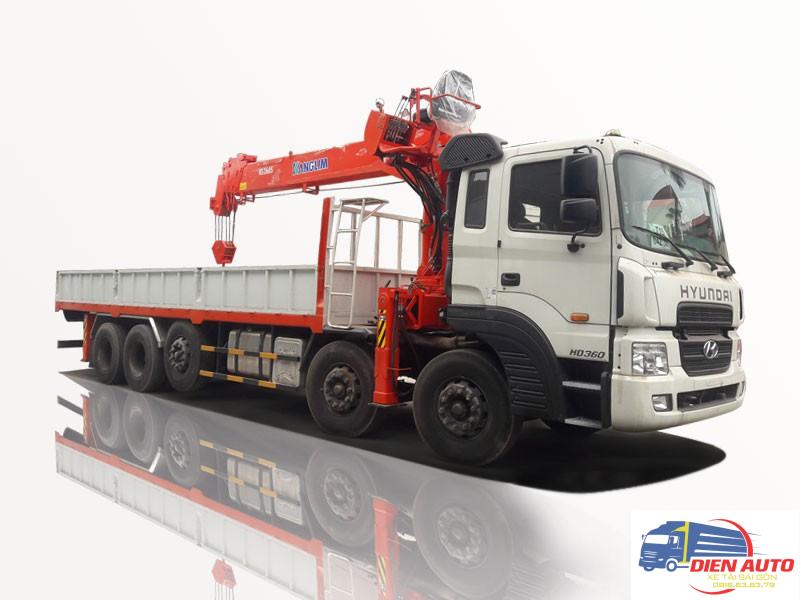 Sau đây Diễn Auto xin giới thiệu đến Quý Khách Hàng xe tải Hyundai HD360 5 chân 15 tấn gắn cẩu Kanglim 10 tấn 5 khúc. Với chất lượng vượt trội, giá xe tải gắn cẩu hợp lý, đây sẽ là sự lựa chọn hoàn hảo cho công việc kinh doanh của bạn, giúp bạn thu hồi vốn nhanh.