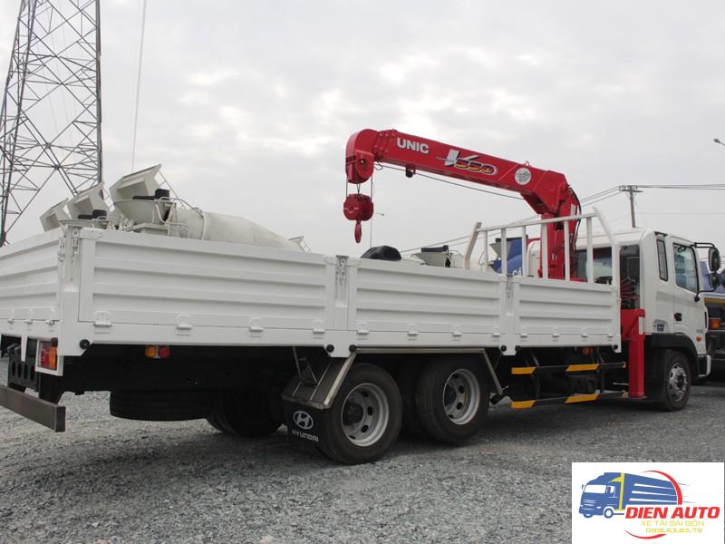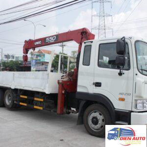 Xe tải Hyundai HD210 Gắn cẩu Unic 4 tấn 6 khúc có trọng tải sau khi gắn cẩu 10900kg với kích thước thùng chở hàng 6450 x 2350 x 520/— mm đáp ứng được nhu cầu vận chuyển hàng hóa đa dạng và đang rất được nhiều quan tâm và ủng hộ của khách hàng bởi chất lượng tốt, tải trọng cao, vận hành bền bỉ, tiết kiệm nhiên liệu, chi phí đầu tư thấp. Xe có sẵn tại đại lý xe tải gắn cẩu.