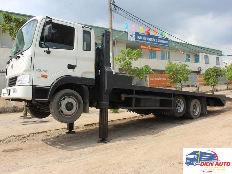 Xe tải Hyundai HD210 3 chân nâng đầu chở máy công trình được nhập khẩu nguyên chiếc từ nhà máy Hàn Quốc với chất lượng cao và bền bỉ. Đặc biệt xe có thiết kế hệ thống 3 trục linh hoạt giúp điều chỉnh sức tải. Với hệ thống khung gầm mạnh mẽ, bền bỉ ấn tượng, được thiết kế trên hệ thống treo toàn bộ bằng thép chất lượng tạo cảm nhận lái tốt nhất.