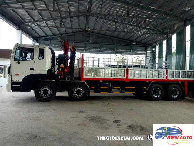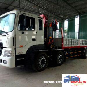 Xe tải gắn cẩu với trọng tải cho phép chở còn 14300kg, chiều dài thùng dài 8260 x 2350 x 625/— mm đáp ứng tốt nhu cầu vận chuyển hàng hóa đa dạng. Cẩu Ferrari 8 tấn 4 khúc F238 nhập khẩu 100% chất lượng cao. Thiết kế 4 đoạn với khối lượng nâng tối đa 8550kg tại 2,5m và 1725kg tại 10,5m. Vận hành bằng thủy lực. Hệ thống điều khiển cẩu hiện đại, dễ dàng sử dụng. Giá xe tải gắn cẩu phải chăng, hợp lý.