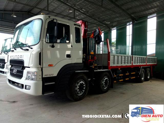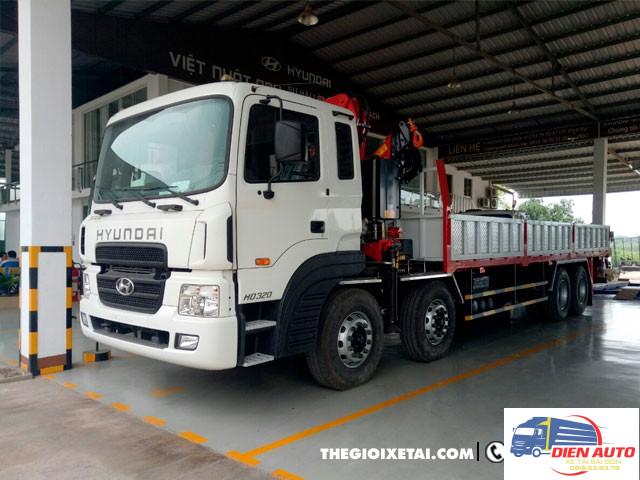 Ngoại thất xe tải Hyundai HD320 gắn cẩu được thiết kế khá tinh xảo và chắc chắn, các bộ phận trên xe được cấu tạo hài hòa với nhau vẫn giữ nguyên thiết kế quen thuộc bấy lâu nay mà mọi người vẫn tin tưởng của dòng xe Hyundai với thiết kế cabin khí động học với dạng mặt trụ cong giúp giảm sức cản của không khí giúp tiết kiệm nhiên liệu hơn. Mặt trước của xe tải Hyundai HD320 gây ấn tượng với người sử dụng bởi logo Hyundai to bản đặt trên ga lăng, các hốc gió trên ga lăng thiết kế lớn giúp làm mát động cơ nhanh. Capo mở ra dễ dàng bằng nút điều khiển trong cabin, giúp việc kiểm tra bảo dưỡng xe nhanh chóng thuận tiện, xe được xem là dòng xe tốt nhất hiện nay trên thị trường.