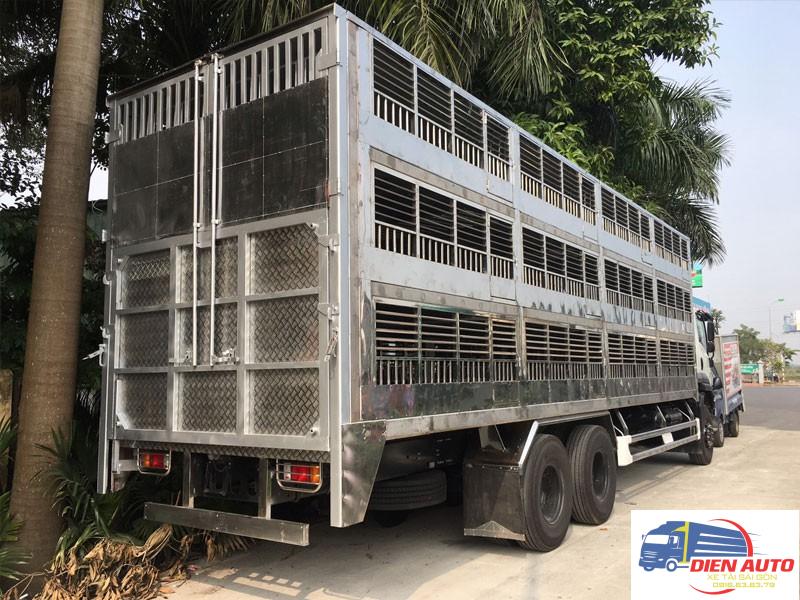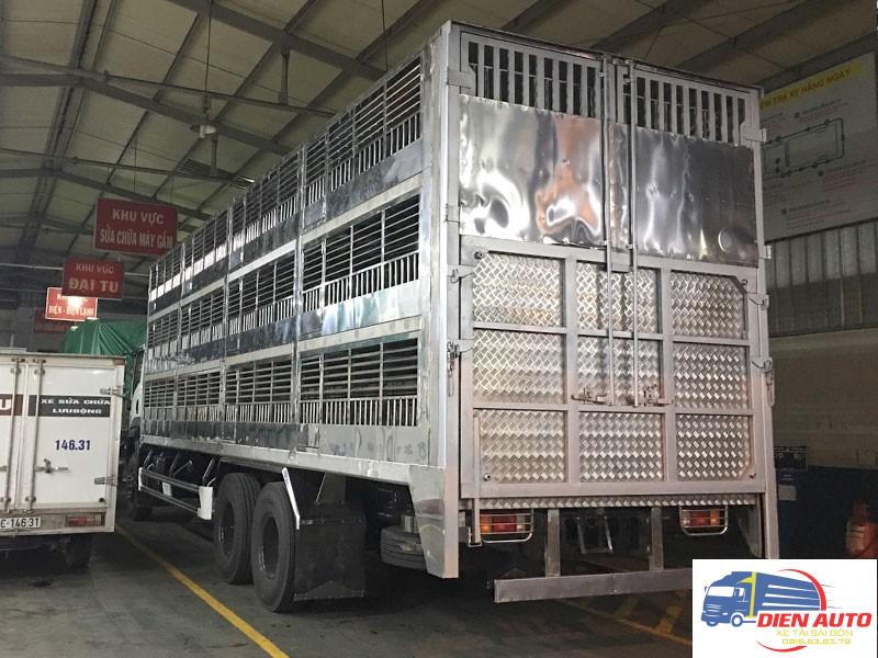 Chở gia súc thùng xe sẽ tiếp xúc thường xuyên với nước, NH3, thậm chí là axit. Nên vật liệu đóng thùng được lựa chọn là Inox 304 nhằm tránh sự ăn mòn hóa học và oxy hóa theo thời gian. Xe được trang bị thêm bửng nâng để thuận tiện việc chuyên chở và nâng hạ gia súc.