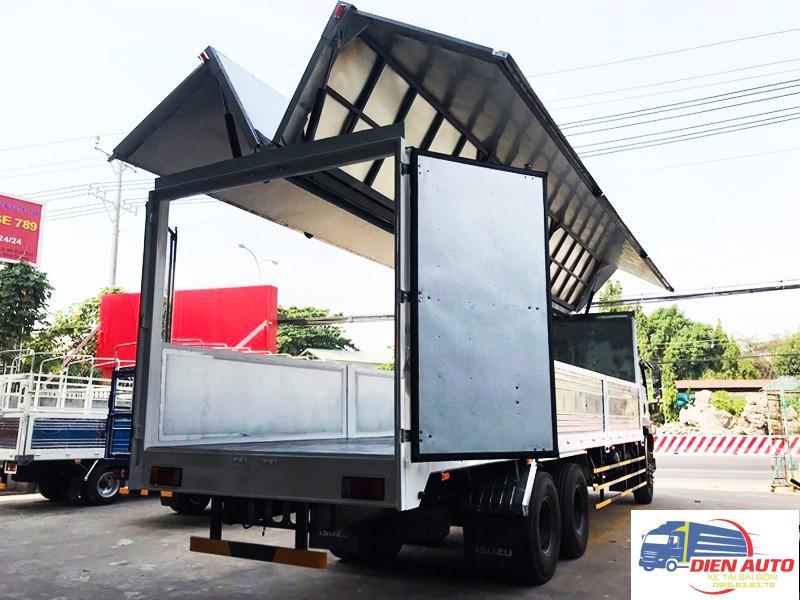 Xe tải Isuzu FVM34WE4 đóng thùng cánh dơi sẽ là lựa chọn phù hợp nhất cho khách hàng có nhu cầu vận chuyển hàng hóa khối lượng lớn, quãng đường dài, bởi Isuzu FVM có khả năng chịu tải cao, độ bền bỉ vượt trội, hệ thống vận hành phối hợp nhịp nhàng, vận hành ổn định cho những chuyến hàng luôn xuyên suốt.