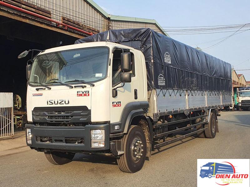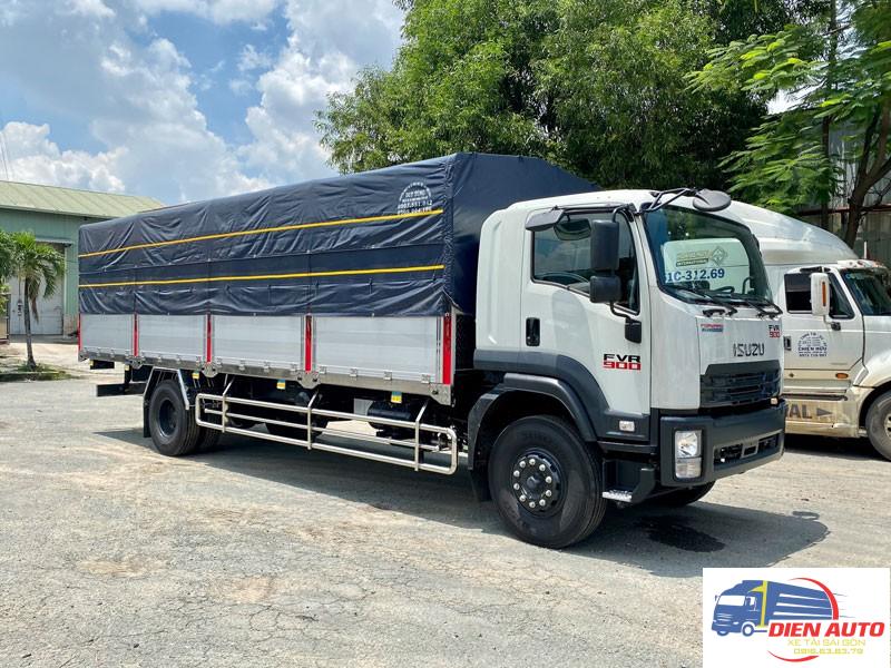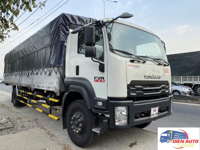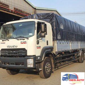 Dòng sản phẩm mới nhất của Isuzu mới ra mắt thị trường gần đây là chiếc xe tải Isuzu FVR34UE4 thùng dài 9m8. Chiếc xe không có nhiều sự thay đổi về động cơ và thiết kế so với những dòng xe FVR trước đó, nhưng việc thùng xe được thiết kế lên tới 10m là điểm nhấn vượt trội của dòng xe này. Thùng xe dài nên khối lượng hàng hóa vận chuyển lớn hơn và dễ dàng vận chuyển được những mặt hàng cồng kềnh, chính vì thế mà khi mới ra mắt Isuzu FVR34UE4 được rất nhiều khách hàng quan tâm. Sau đây Diễn Auto sẽ giới thiệu đến quý khách hàng một trong những phiên bản được nhiều khách hàng quan tâm của dòng xe này: Xe tải Isuzu FVR34UE4 7.5 tấn thùng bạt.