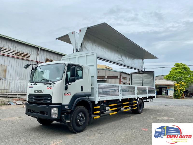Xe tải thùng kín cánh dơi là phiên bản được nâng cấp từ dòng xe tải thùng kín cơ bản, với sự đổi mới trong cấu tạo thùng đã góp phần tăng cao giá trị sử dụng cho xe. Lợi ích mà xe tải Isuzu FVR34UE4 7.5 tấn thùng kín cánh dơi mang đến cho quý khách hàng phải nói là cực kì tốt vì không chỉ đùng dể chở hàng hóa mà với thiết kế cánh dơi mở bửng 2 bên còn hỗ trợ bạn trong việc biến chiếc xe này thành một chiếc xe bán hàng lưu động với các mặt hàng đa dạng như quần áo, trái cây, nhu yếu phẩm…