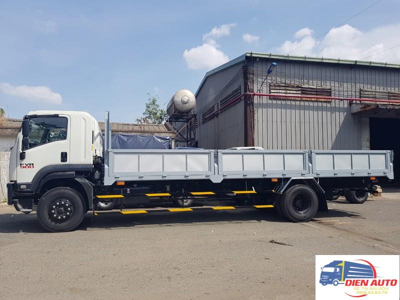 Như đã nói ở trên thì phiên bản Isuzu FVR34UE4 thùng lửng có thùng hàng dài hơn so với những phiên bản trước cùng phân khúc tải trọng, thùng xe dài tới 9m8.