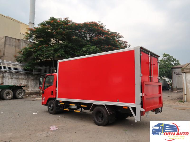 Thùng xe tải Isuzu NMR85HE4 thùng kín bửng nâng được đóng mới 100% theo tiêu chuẩn của cục đăng kiểm Việt Nam với tải trọng cho phép chở là 1700 kg và kích thước lọt lòng thùng là 4370 x 1820 x 1850/—mm.