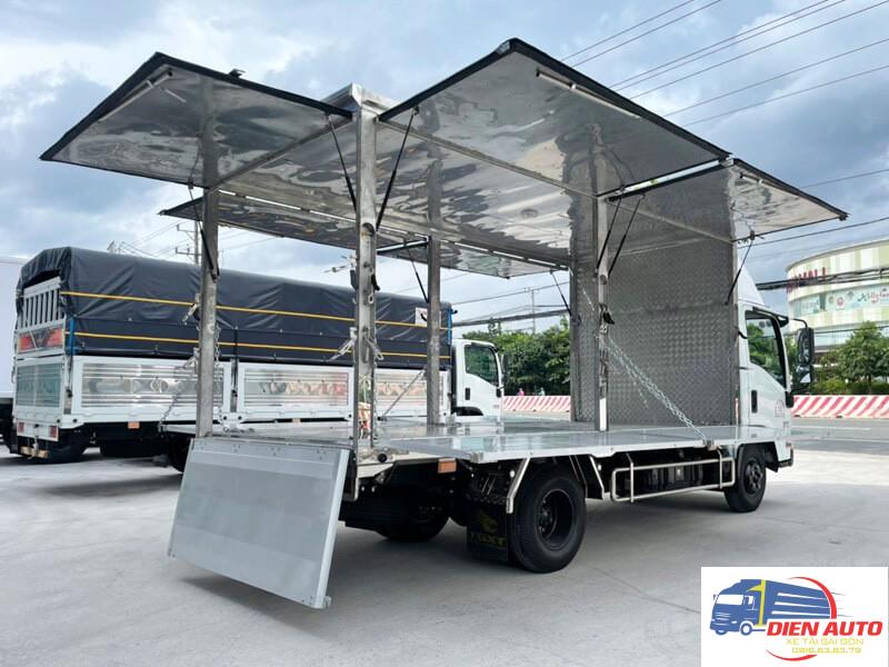 Điểm đặc biệt của chiếc thùng này chính là cấu tạo ở phần cánh dơi, nhờ phần cánh dơi mở ra sẽ hỗ trợ quá trình tháo dỡ hàng hóa trở nên thuận lợi nhanh chóng. Một tính năng nữa mà chiếc xe thùng kín cánh dơi này mang lại chính là để một cửa hàng di động cho các hoạt động kinh doanh buôn bán của quý khách hàng. Với thiết kế thanh chống bửng tạo không gian thoáng trưng bày hóa dễ dàng, thích hợp cho những ai đang cần khởi nghiệp nhưng hạn chế về chi phí để thuê mặt bằng.