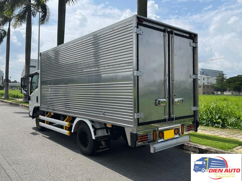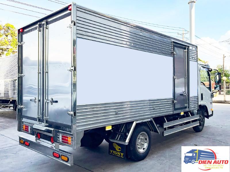 Thùng kín của chiếc xe tải Isuzu QMR77HE4 2.5 tấn được khen ngợi về sự kín đáo giúp che chắn tốt hàng hóa khỏi sự tác động của những yếu tố thời tiết khắc nghiệt, nhiệt độ cao. Do đó, các loại hàng hóa được vận chuyển bằng loại thùng kín được kể đến bao gồm mặt hàng linh kiện điện tử, mặt hàng mỹ phẩm,…. Hiện nay, thùng đang được đóng tại đại lý Thế Giới Xe Tải với vật liệu được đánh giá cao về khả năng chống oxy hóa, chống gỉ sét cũng như chịu lực tốt như: Inox 304, Inox 201, nhôm, thép, composite,… Thùng xe cũng thiết kế bửng mở dễ dàng giúp cho việc di chuyển hàng hóa lên xuống được diễn ra nhanh chóng, tiết kiệm được thời gian và công sức của các cánh tài xế. Thùng đang được thiết kế mang kích thước lọt lòng với độ dài x rộng x cao lần lượt là 4360 x 1850 x 1770/— mm. Nhờ đó mà thùng được đánh giá chuyên chở đa dạng các loại hàng hóa.