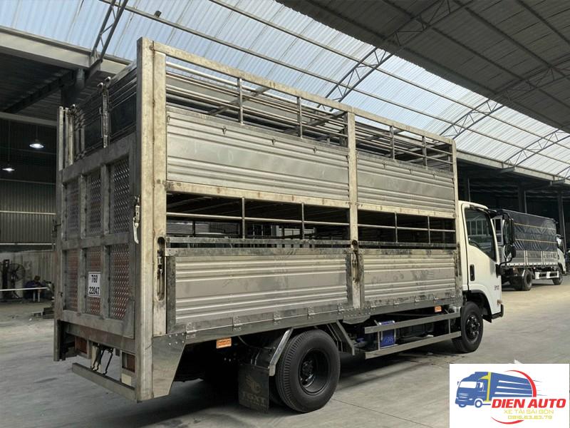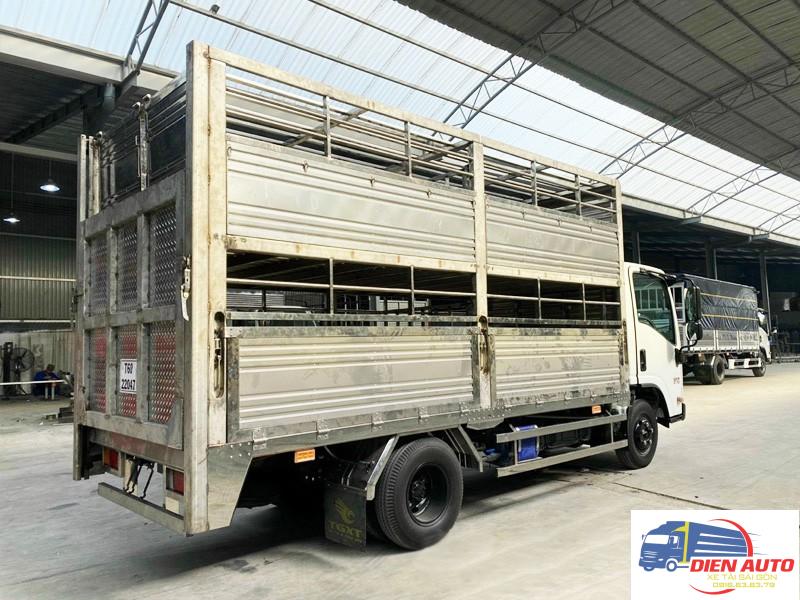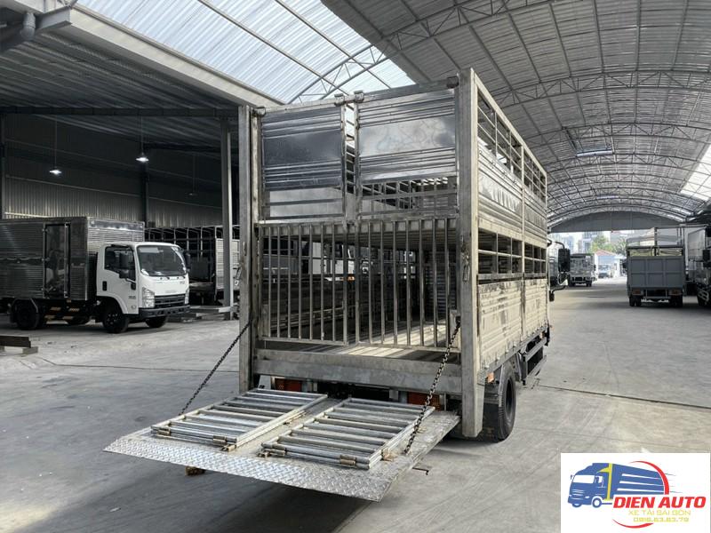 Thùng chở gia súc là loại thùng rất được ưa chuộng hiện nay, nó đáp ứng được nhiều yêu cầu của khách hàng, để tăng độ bền bỉ cho thùng xưởng gia công sẽ sử dụng các loại vật liệu chống ăn mòn cao như inox 304 bởi chất thải của gia súc có tính oxy hóa mạnh. Thùng có thiết kế 2 tầng chở được nhiều gia súc hơn và cũng thông thoáng hơn, đảm bảo sức khỏe cho gia súc suốt quá trình vận chuyển, thùng được gắn bửng nâng hạ bằng thủy lực, linh kiện nhập khẩu, giúp việc vận chuyển gia súc lên thùng xe dễ dàng hơn, quanh bửng nâng có thiết kế khung chuồng di động tháo dỡ thuận tiện, đảm bảo an toàn trong quá trình đưa gia súc lên thùng, sàn thùng và sàn bửng nâng đều được dập lá me chống trượt, có khe rảnh dẫn nước thải gia súc vào bồn chứa có dung tích lớn, vừa dễ dàng vệ sinh vừa tránh gây ô nhiễm môi trường. Thùng có kết cấu chắc chắn, sử dụng vật liệu cao cấp, đóng theo tiêu chuẩn của Cục Đăng Kiểm được bảo hành chính hãng tại Diễn Auto.
