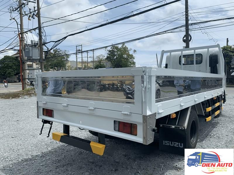 Tay khóa bửng thiết kế đẹp mắt, sàn thùng phẳng chịu tải cao. Tổng thể thùng mang tính thẩm mỹ vượt trội, sử dụng toàn bộ nguyên liệu cao cấp, độ bền cao. Thùng được đóng theo tiêu chuẩn cục đăng kiểm tại Diễn Auto với kích thước lọt lòng 4360 x 1850 x 490/—mm, hỗ trợ và đáp ứng tối ưu mọi hoạt động chuyên chở hàng hóa cho quý khách.