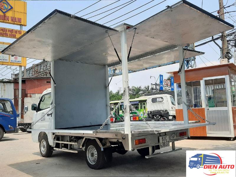 Phiên bản thùng kín cánh dơi của xe tải Suzuki Carry Pro 750kg được trang bị là loại thùng bán hàng lưu động với thiết kế mang tính tiện dụng cao giúp cho nhà doanh nghiệp nhỏ lẻ có thể áp dụng vừa chuyên chở hàng hóa mà còn tăng thêm nguồn thu nhập thông qua việc bán hàng trực tiếp trên xe. Chiếc thùng xe của chúng ta được áp dụng để chuyên chở nhiều những loại hàng hóa đa dạng như quần áo, trái cây, nước giải khát,… Thùng có thiết kế mở 3 cửa vô cùng tiện lợi cho việc buôn bán trên xe ở những tụ điểm giải trí. Khách hàng có thể thay đổi địa điểm buôn bán làm tăng thêm tính đa dạng và mang lợi nhuận, thu nhập cao. Thùng kín cánh dơi hiện được đóng chắc chắn với một độ bền tuyệt đối thông qua những loại vật liệu cao cấp khác nhau tùy theo nhu cầu của từng doanh nghiệp, khách hàng như inox 304, inox 430, sắt CT3,… Thùng xe hiện được đóng tại đại lý Diễn Auto đảm bảo đạt tiêu chuẩn chất lượng 100% của Cục Đăng Kiểm Việt Nam!