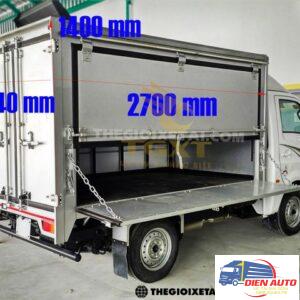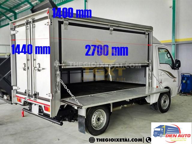 – Kích thước thùng kín xe tải TaTa Super Ace:(Dài x Rộng x Cao): 2700 x 1440 x 1400/— mm