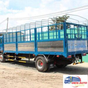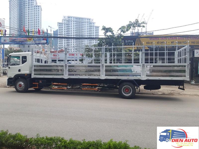 - Thùng xe siêu dài với kích thước lên đến 9m5 có thể vận chuyển được rất nhiều loại hàng đặc biệt là những mặt hàng có kích thước lớn và cồng kềnh như sắt, thép